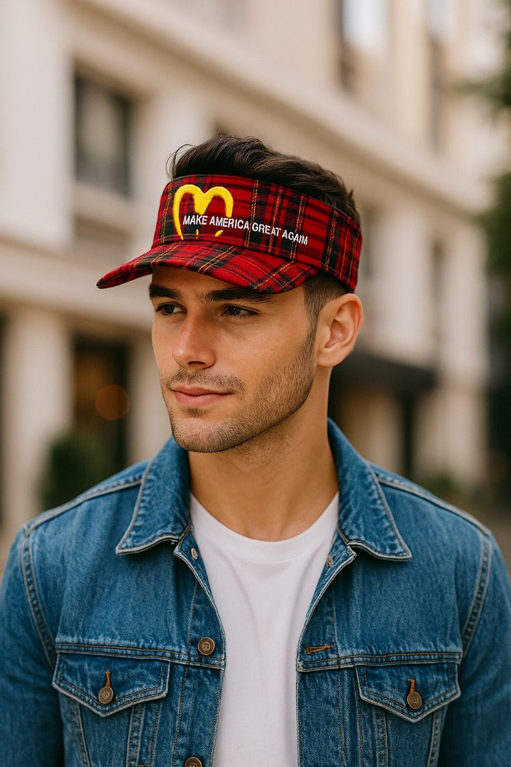 Stand out with bold style and a touch of satire. The Trump Legacy – Make America Great Hat combines a classic plaid design with a playful twist on an iconic slogan. Featuring embroidered text and a bright golden “M” detail, this novelty hat makes a statement wherever you go.